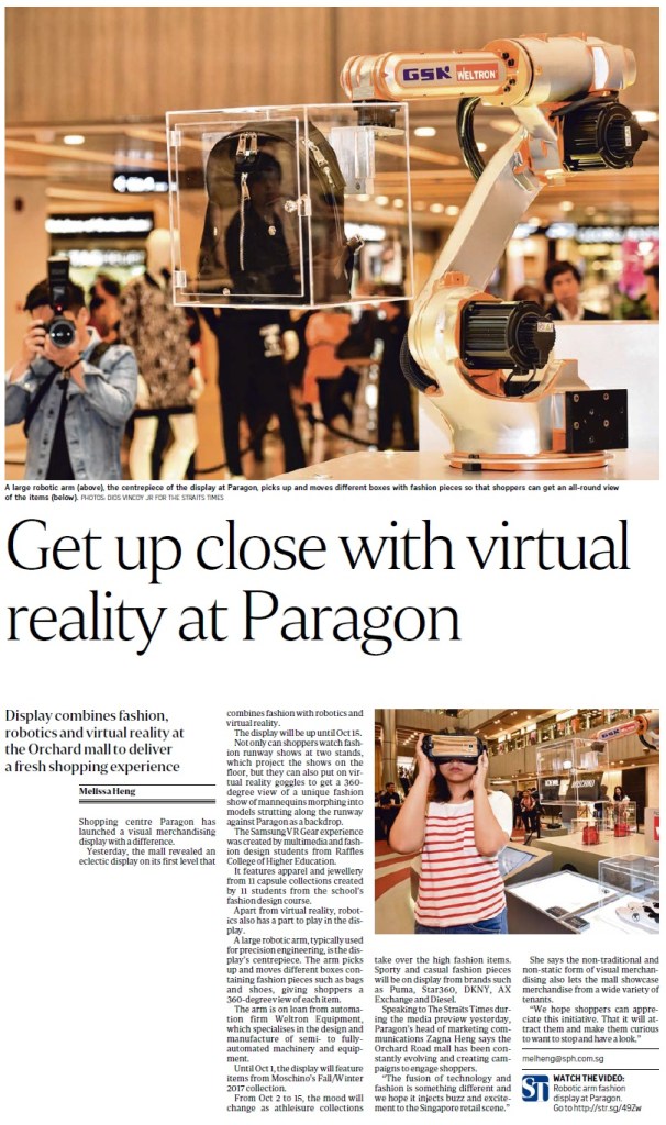 We are pleased to be invited to deliver a fresh shopping experience to shoppers with the showcase of fashion pieces by WELTRON’s Robotic Arm! (Watch the video)